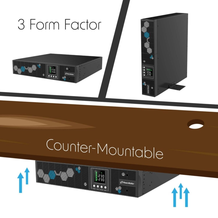 Seria zasilaczy składa się w sumie z trzech różnych modeli wyróżniających się mocą pozorną 1000 VA, 2000 VA lub 3000 VA. Zestaw z zasilaczem posiada dodatkowe uchwyty montażowe, dzięki którym UPS może zostać zainstalowany np. pod ladą lub stołem. Nie zabrakło również specjalnej tacy do zarządzania kablami.